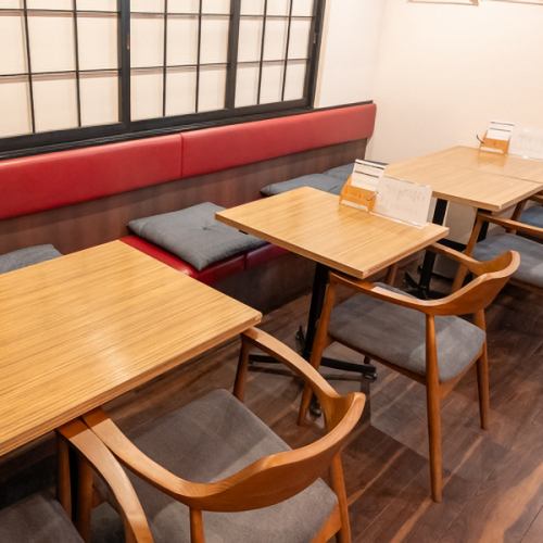 明るく開放感のあるテーブル席。お一人様からグループまで気軽に利用できます。